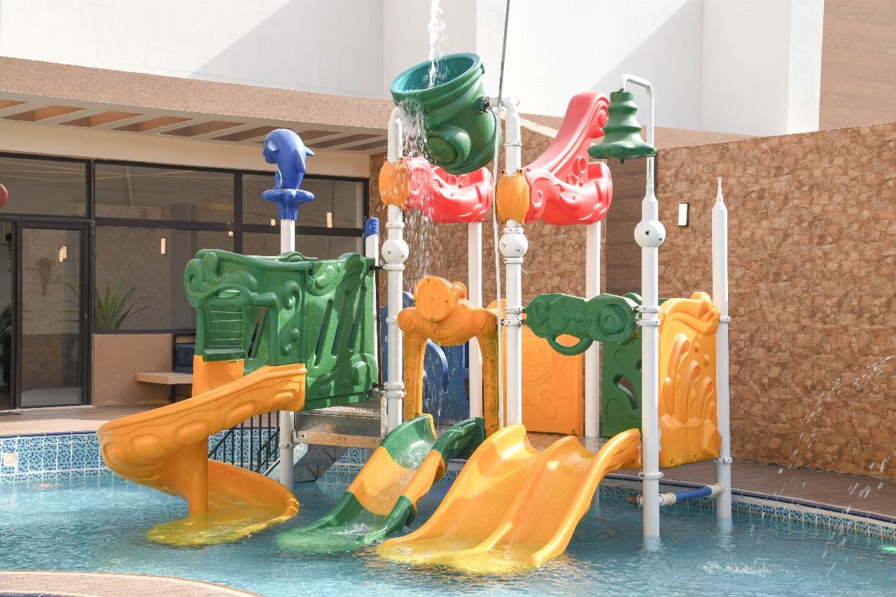 - مسبح للكبار (2 متر) ومسبح للأطفال (45 سم) بألعاب مائية متكاملة